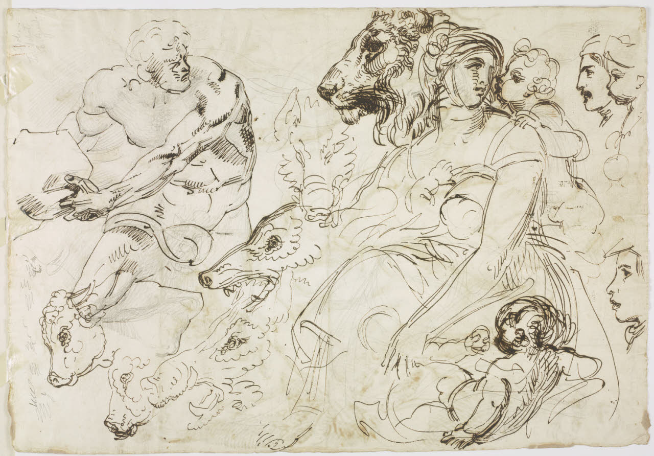 Schizzi di varie figure e animali