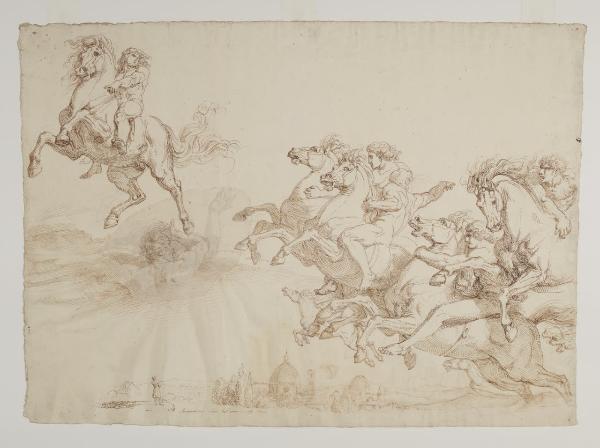 - NOTIZIE STORICO CRITICHE Pubblicato da V. Bignami (1900) come opera di Luigi Sabatelli.\nLa figura del cavaliere in groppa al cavallo sulla sinistra ha il suo corrispettivo speculare nel foglio a grafite e penna "San Bartolomeo/ cavaliere" della Collezione di disegni Riccardo Lampugnani del Museo Poldi Pezzoli (inv. n. 5235), attribuito ad una generica Scuola di Luigi Sabatelli.