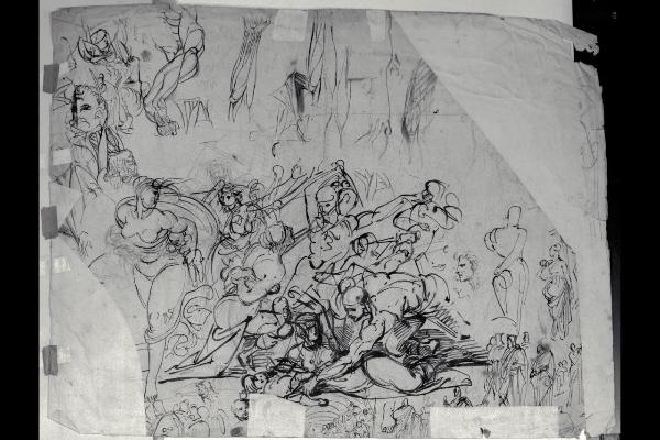 Schizzo per una strage degli innocenti, schizzi di volti e figure, e studi anatomici