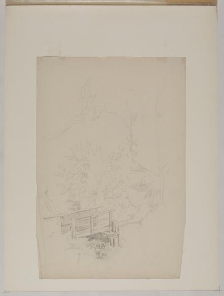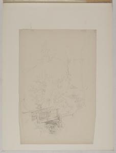 Studio di paesaggio con gruppo di alberi e ponticello di legno