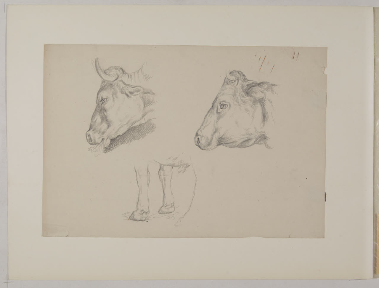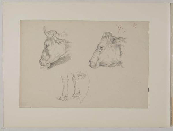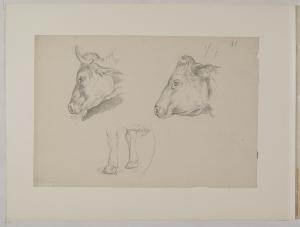 Due studi della testa e uno delle gambe anteriori di un bovino