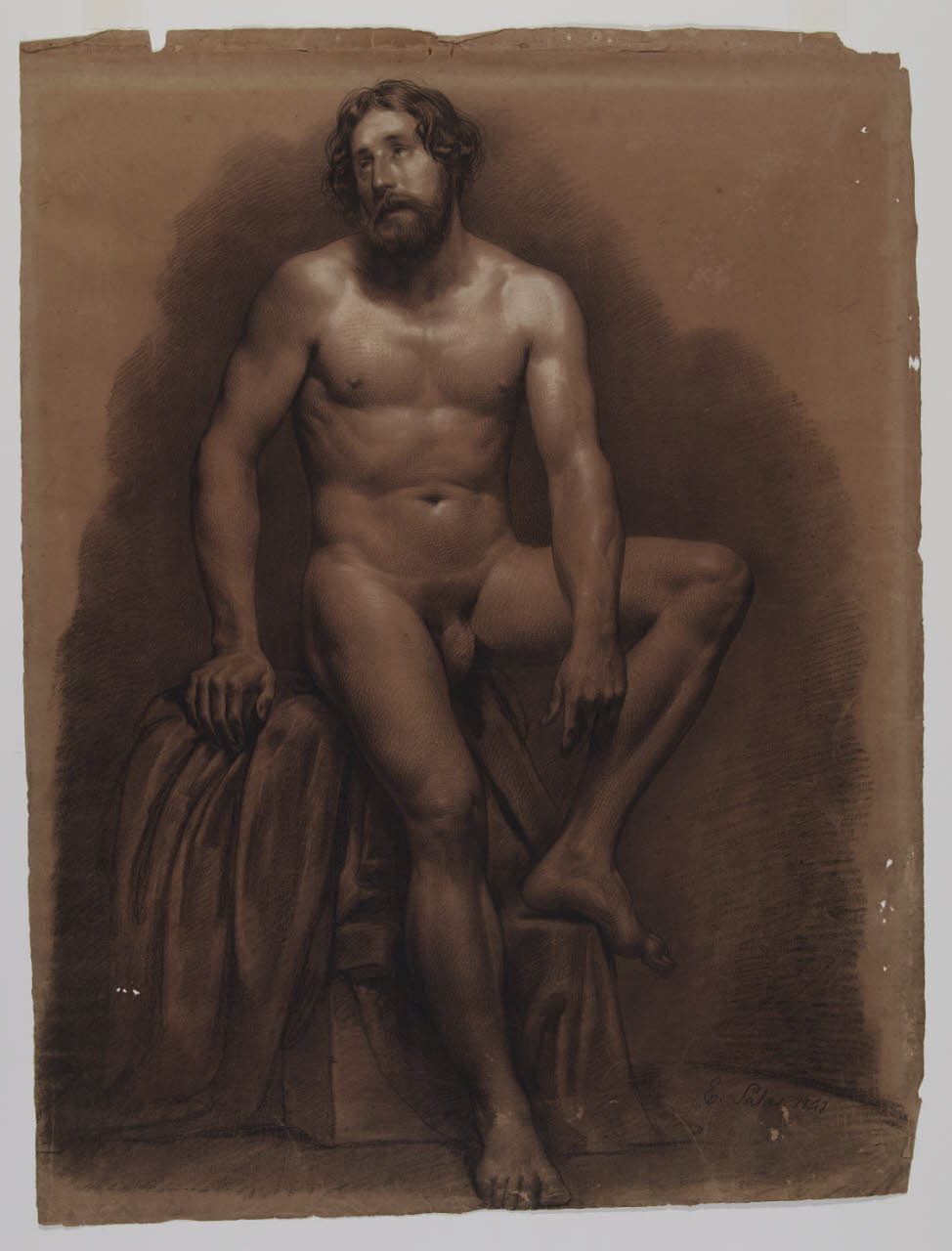 carta marroncina/ matita nera/ carboncino/ gessetto bianco