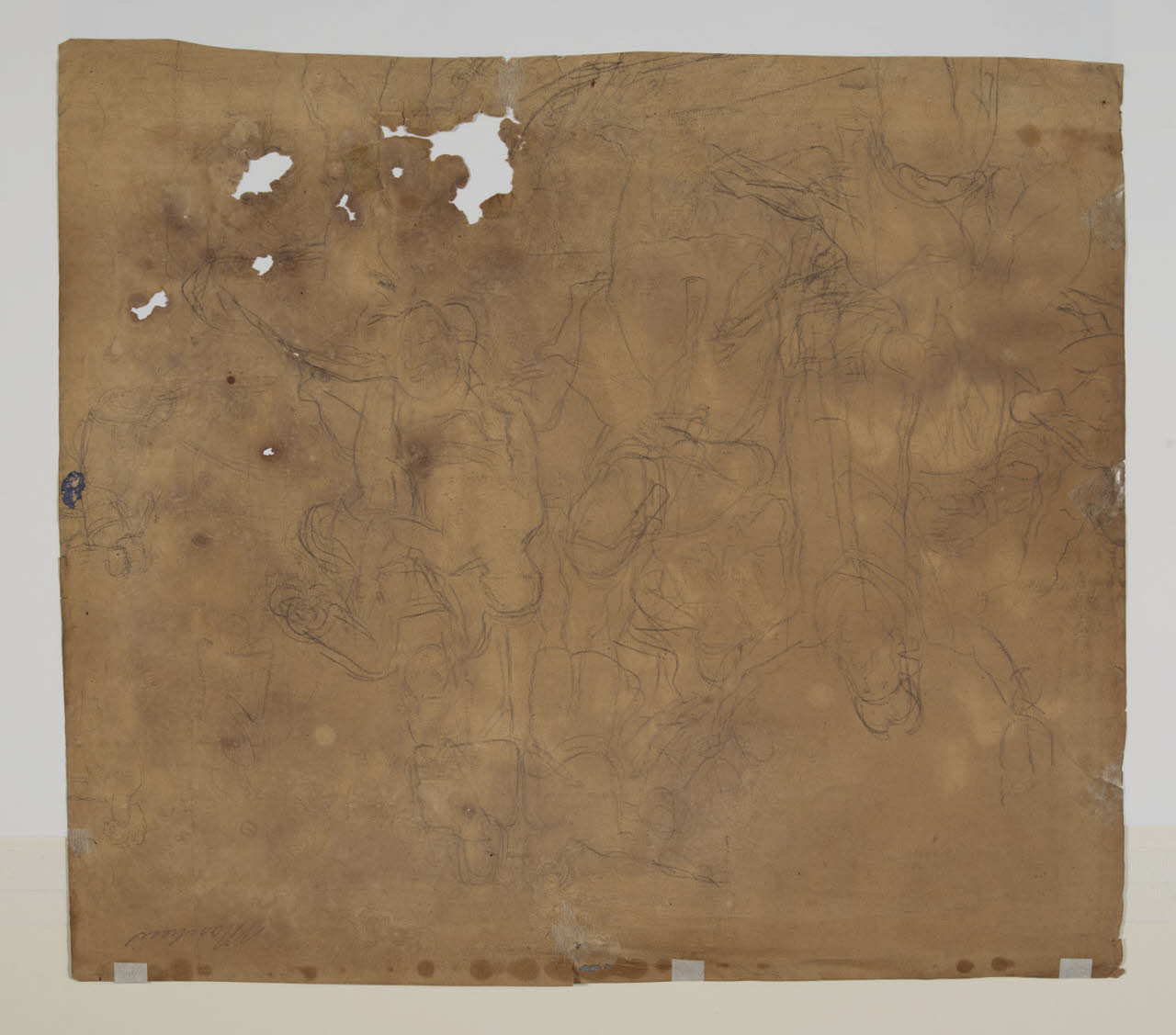 - NOTIZIE STORICO CRITICHE Il foglio presenta, al recto e al verso, due diversi studi per il "Rinvenimento del corpo di Santo Stefano" affrescato da Vitale Sala nel 1825 nel coro della Basilica di Santo Stefano Maggiore a Milano.