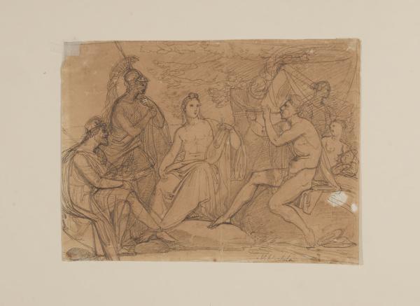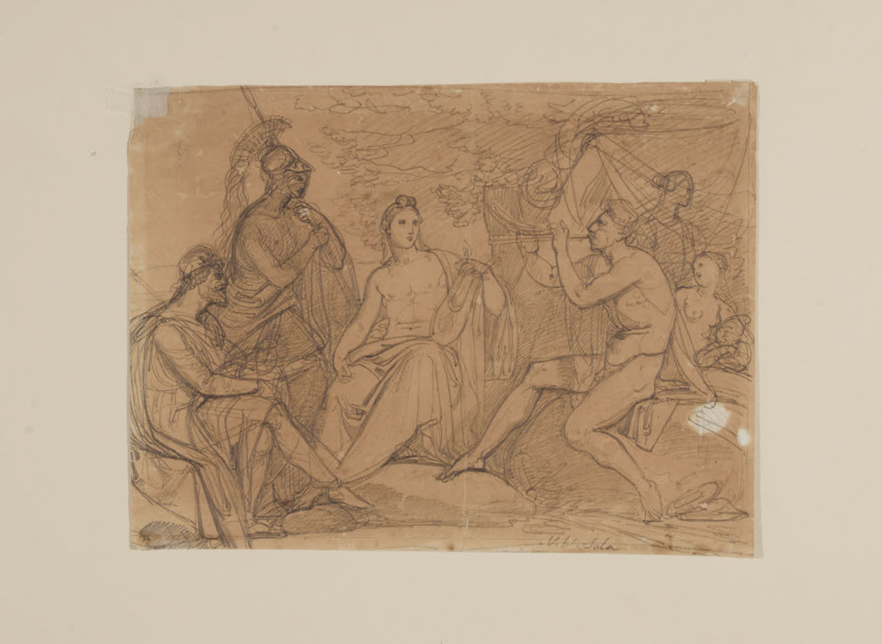 • NOTIZIE STORICO CRITICHE Il foglio rappresenta uno degli episodi affrescati da Vitale Sala tra il 1833 e il 1834 nella volta del Gabinetto Reale di Apollo, nel Castello di Racconigi (Cuneo).