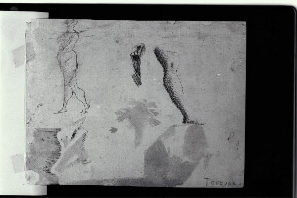 Schizzo di una figuretta femminile e studi per una gamba. Schizzo di una figuretta femminile e studi per una gamba