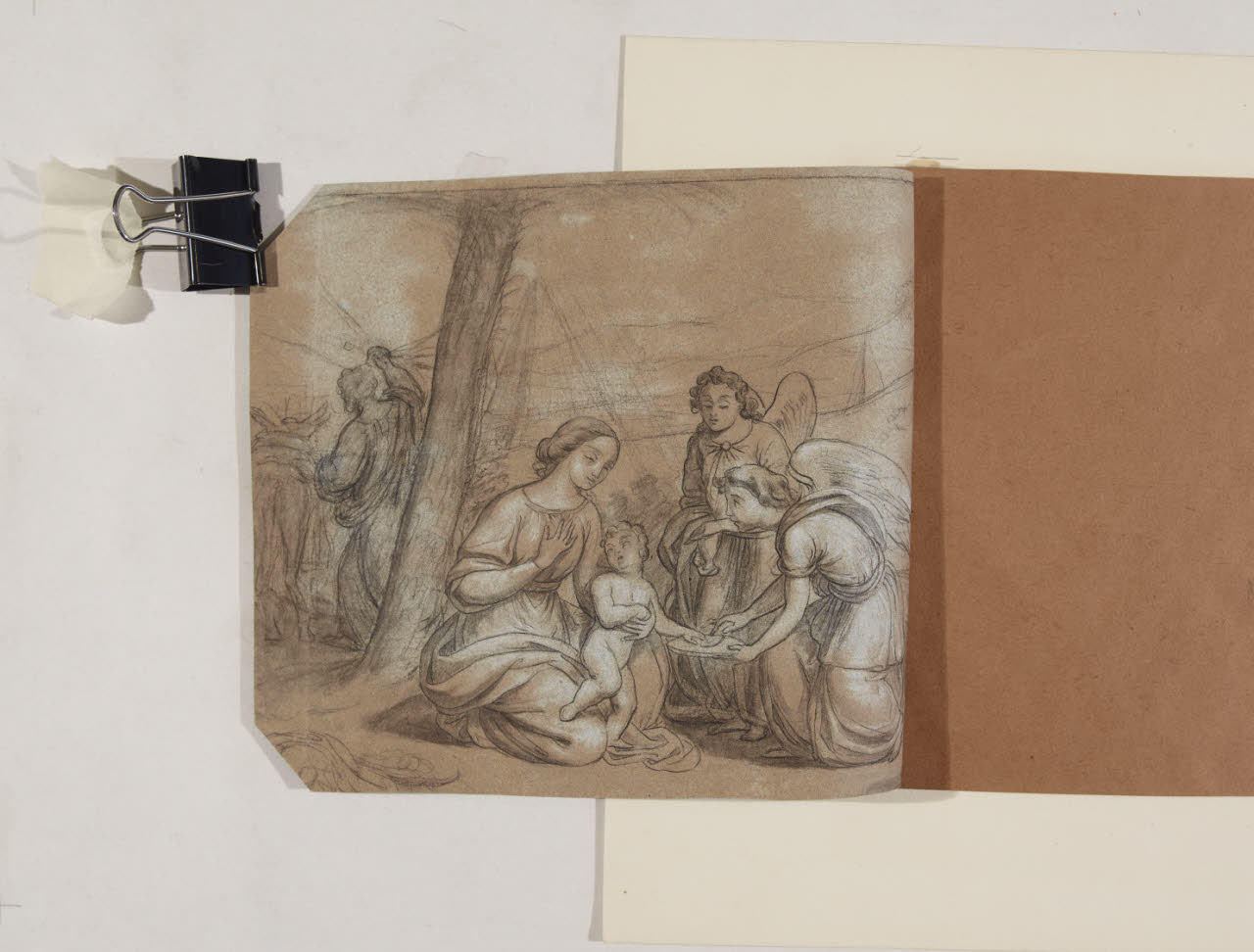 carta azzurra/ grafite/ matita nera/ acquerellature (?)/ gessetto bianco
