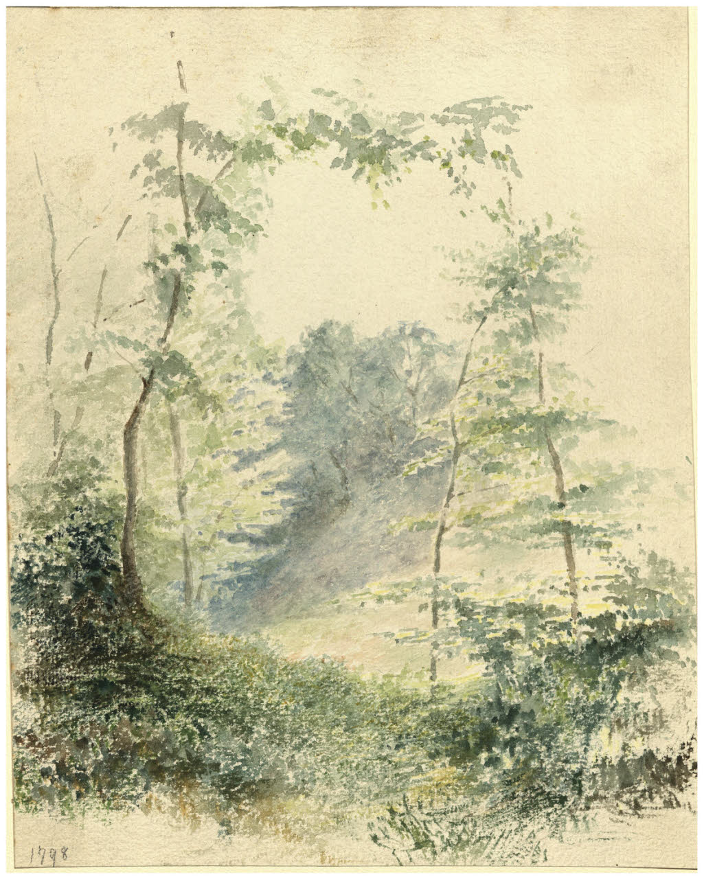 - NOTIZIE STORICO CRITICHE Pietro Troubetzkoy, fratello di Paolo e discendente da un'aristocratica famiglia di collezionisti, risentì dell'insegnamento di Daniele Ranzoni, suo primo maestro e successivamente delle innovazioni artistiche della scapigliatura milanese. Frequentatore dell'ambiente della Famiglia Artistica, Pietro Troubetzkoy si dedicò all'arte dipingendo soprattutto paesaggi e ritratti. Donato da Vittore Grubicy nel 1920, questo foglio raffigura proprio uno studio di paesaggio con alcuni alberi in primo piano che fungono da quinta scenografica. La scarsa fortuna incontrata da Pietro Troubetzkoy a Milano, lo spinse a partire per Londra intorno al 1890-1891, dove riuscì in breve tempo ad affermarsi come paesaggista e ritrattista.