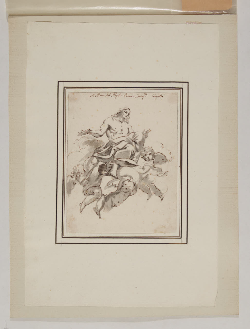 - NOTIZIE STORICO CRITICHE Appartenuto alla collezione del Principe Alberico Barbiano di Belgioioso, il disegno in esame riproduce il particolare del Cristo in gloria, facente parte della più ampia decorazione ad affresco con la Vergine Immacolata nella gloria del Paradiso, realizzata dal senese Raffaello Vanni nella cupola di Santa Maria del Popolo a Roma tra il 1656 e il 1658.