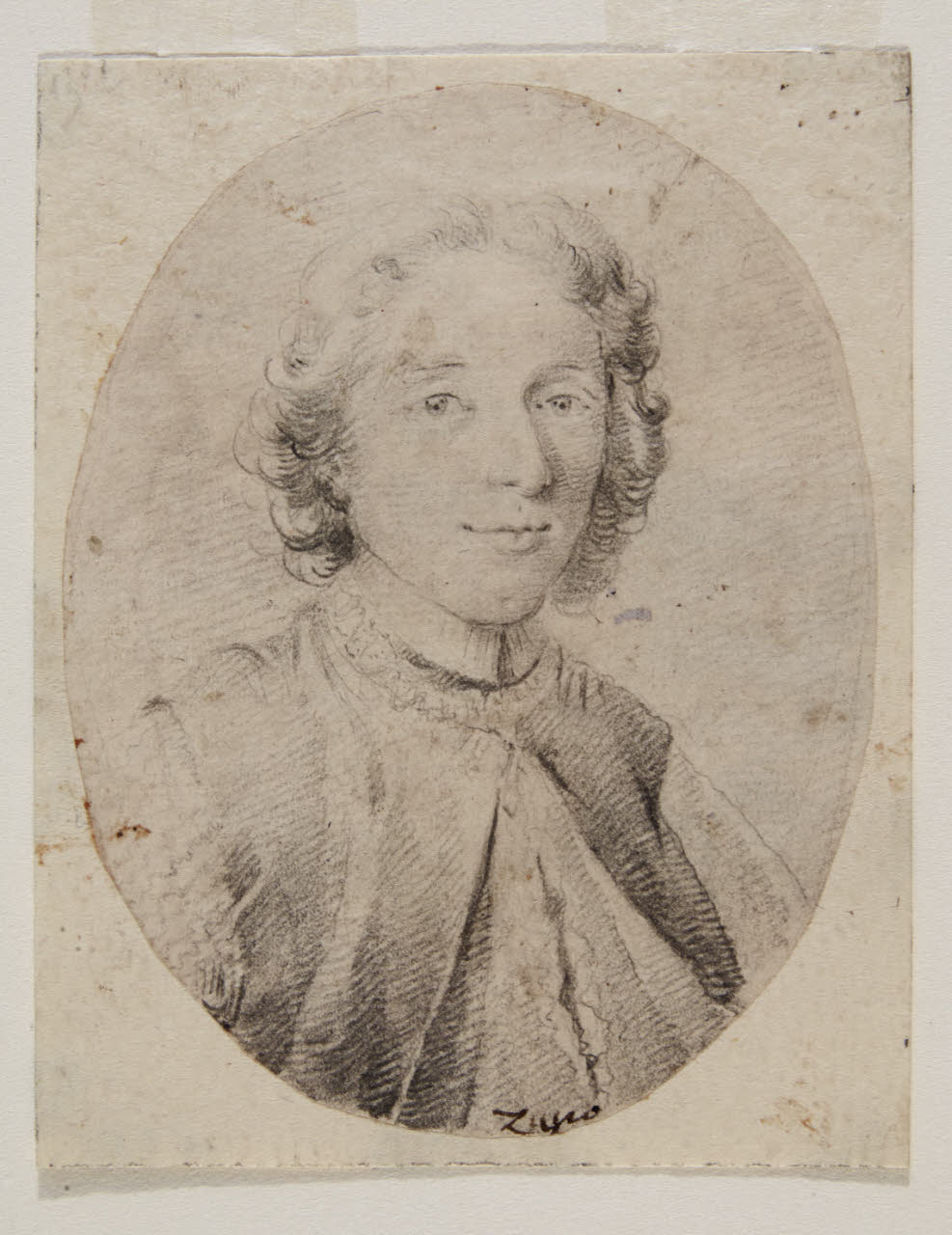 - NOTIZIE STORICO CRITICHE Prolifico pittore e frescante di origine veneziana, Francesco Zugno fu anche disegnatore e il Castello Sforzesco conserva un piccolo nucleo di suoi fogli. Tra questi ve ne sono due che mettono in luce la sua produzione ritrattistica, già studiata del resto da Ivanoff (1954). La piccola effigie in esame, appartenuta alla collezione di Antonio Guasconi, illustra un giovane ecclesiastico entro una semplice cornice ovale nella quale è iscritto "Zugno" in calligrafia di primo Ottocento. Il personaggio ritratto è Alberico Archinto (1698-1758), figlio del conte Carlo, che intraprese la carriera ecclesiastica e fu tra gli studiosi che annotarono il Rerum Italicarum Scriptores di Muratori, pubblicato tra il 1723 e il 1738 dalla Società Palatina, di cui Carlo Archinto fu uno dei principali sostenitori. Ad Alberico è dedicato il quinto volume dell'Opera Omnia dell'erudito modenese Carlo Sigonio, il cui ritratto inciso nello stesso verso da Francesco Zucchi, appare in testa alla prima pagina accompagnato da un'Allegoria della Fede Cattolica. Questo decoro venne progettato da Francesco Zugno che realizzò due distinti disegni: quello oggi conservato al Castello Sforzesco con il ritratto dell'Archinto, e l'altro con una Figura allegorica femminile (la Religione?) e un putto al Metropolitan Museum di New York.\nL'acuta sensibilità della resa psicologica dell'Archinto qui effigiato si distingue da altri ritratti meno espressivi disegnati da Francesco Zugno.