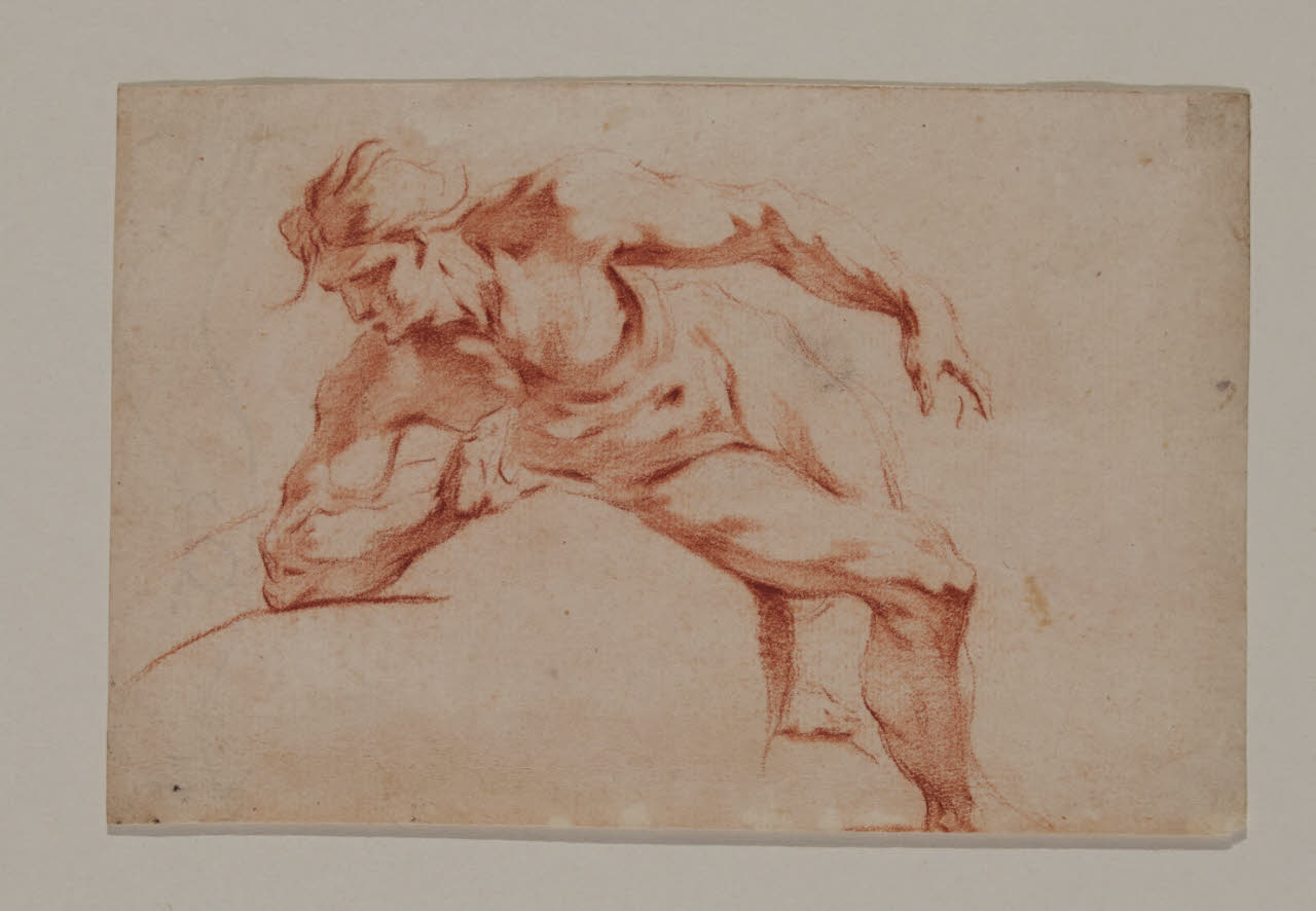 - NOTIZIE STORICO CRITICHE Il disegno in esame fa parte di un nucleo di cinquatuno fogli con Accademie virili a matita rossa, quasi tutti delle stesse dimensioni, pervenuti nelle civiche raccolte nel 1943 dalla raccolta Trivulzio. Già attribuiti ad anonimo del XVIII secolo nell'inventario museale, per questi disegni è stato avanzato, seppure in forma dubitativa, il nome di Federico Bencovich (1677-1753), autore di numerosi nudi d'accademia, la cui attività grafica resta tuttora oggetto di dibattito.