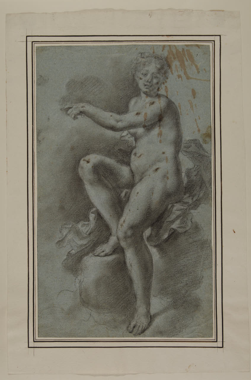 carta azzurra/ carboncino/ sfumino/ gessetto bianco/ biacca