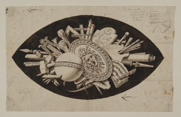 Trofeo con attributi delle Arti e delle Scienze