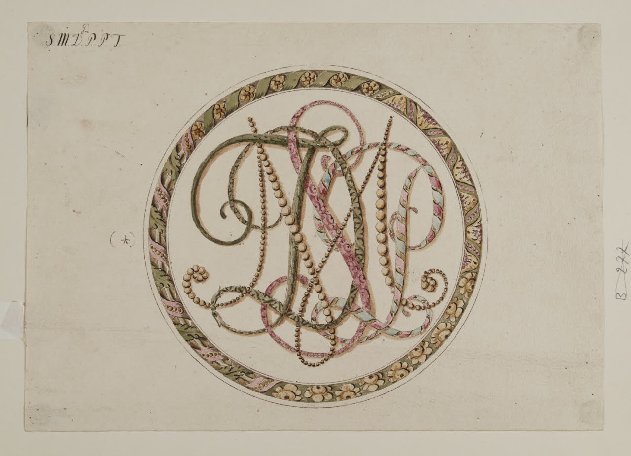 Monogramma SMDGPPT: in un tondo con specimen ornamentali