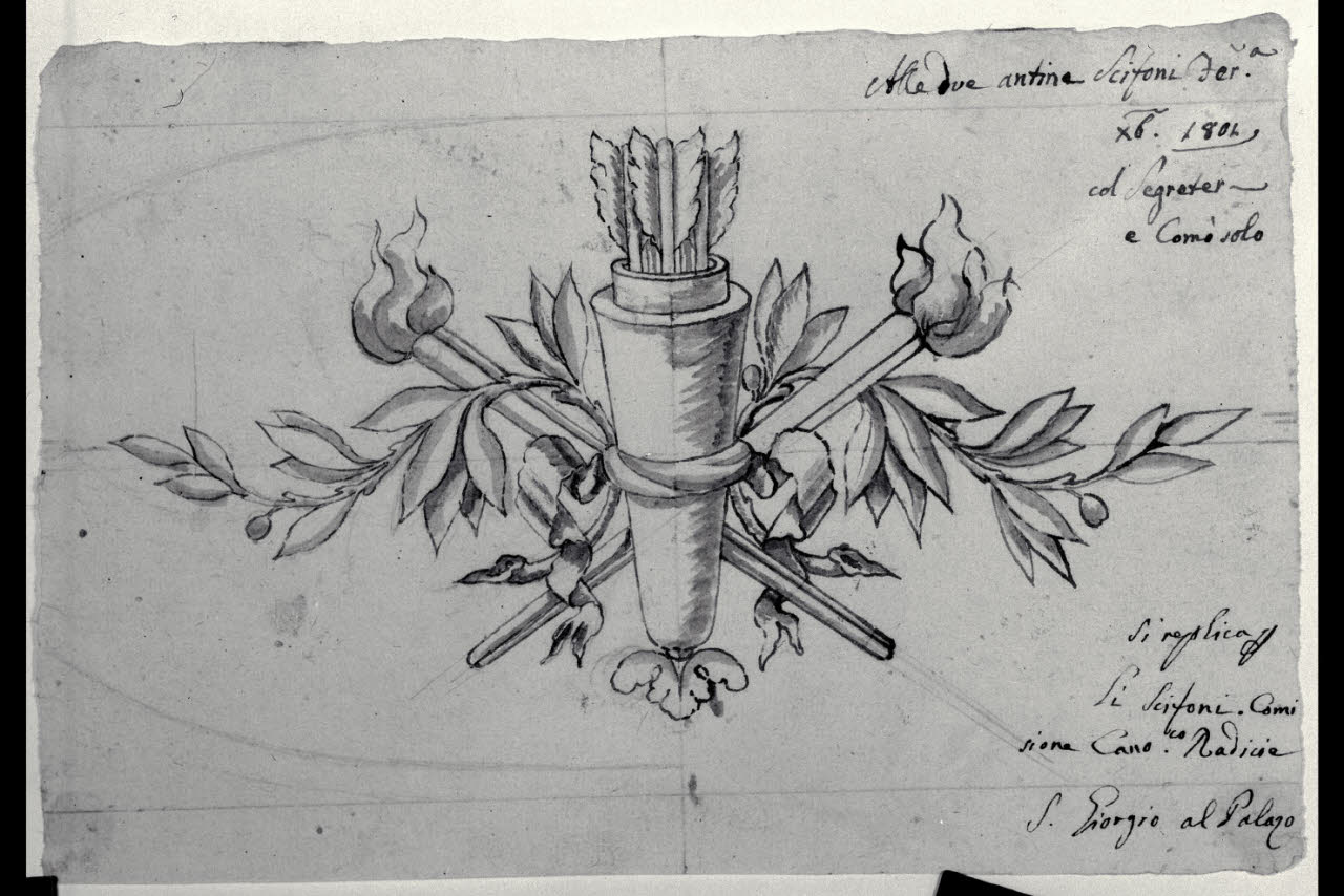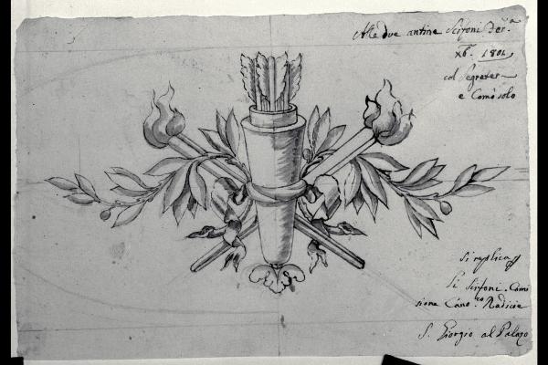 Trofeo con gli attributi allegorici dell'Amore coniugale