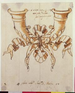 Due cornucopie intrecciate e legate da una galla