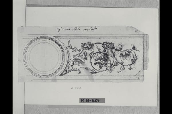 Fregio ornamentale con pampini attorno ad un cerchio