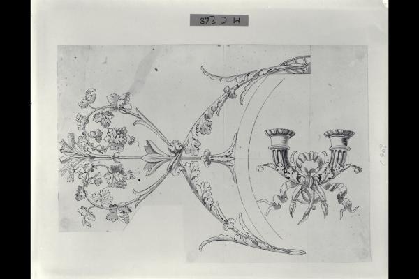 Due cornucopie e idea per la facciata di un comò