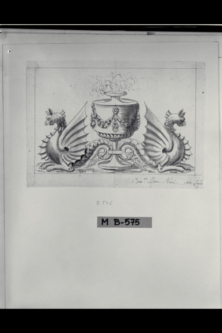 Vaso affiancato da due draghi