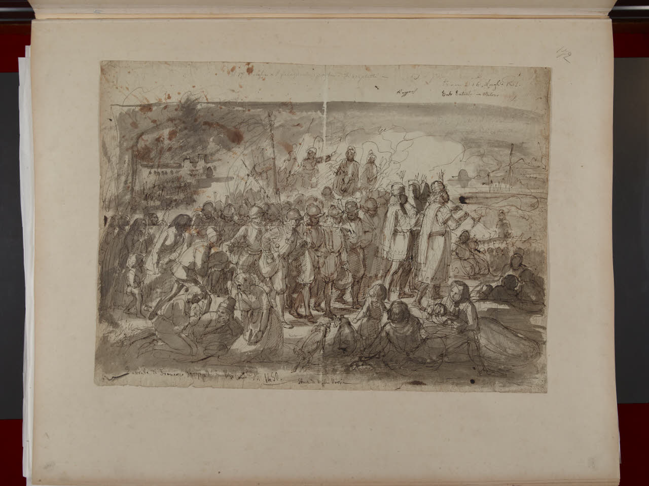 - NOTIZIE STORICO CRITICHE Si tratta di un bozzetto di soggetto storico eseguito da Cherubino Cornienti durante il suo secondo soggiorno romano (1848-1853) di cui ad oggi non si conosce una versione ad olio.