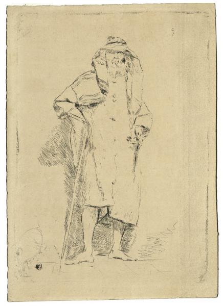 - NOTIZIE STORICO CRITICHE L'attività incisoria di Giuseppe Grandi fu rilevante nel rinnovamento stilistico operato dagli incisori lombardi vicini al movimento scapigliato entro una ricerca che non fu solo italina, ma europea. In questa piccola acquaforte al tratto, sovente confusa con un disegno, l'artista abbandona solo temporaneamente le sperimentazioni eseguite con la tecnica del monotipo. Di incerta datazione, questa incisione è firmata a matita da Grandi e fu donata alle collezioni pubbliche milanesi nel 1942 da Antonietta Bianchi, vedova del pittore Amero Cagnoni. Per il soggetto trattato è da mettere in relazione con il bronzo "Il beduino", oggi nelle Raccolte Frugone di Genova (inv. GPB 807) (cfr. Foglia 2009, p. 142).