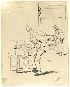 Due figure in ambiente per i Villici Milionari. Scena in un ristorante