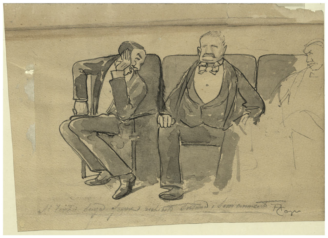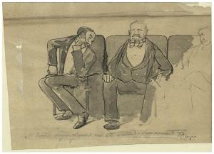 Uomini seduti in poltrone (Studio per "l'uomo che parla con tutti, ad uno spettacolo", vedi nota ms. della vedova). Uomini seduti in poltrone (Studio per "l'uomo che parla con tutti, ad uno spettacolo", vedi nota ms. della vedova)