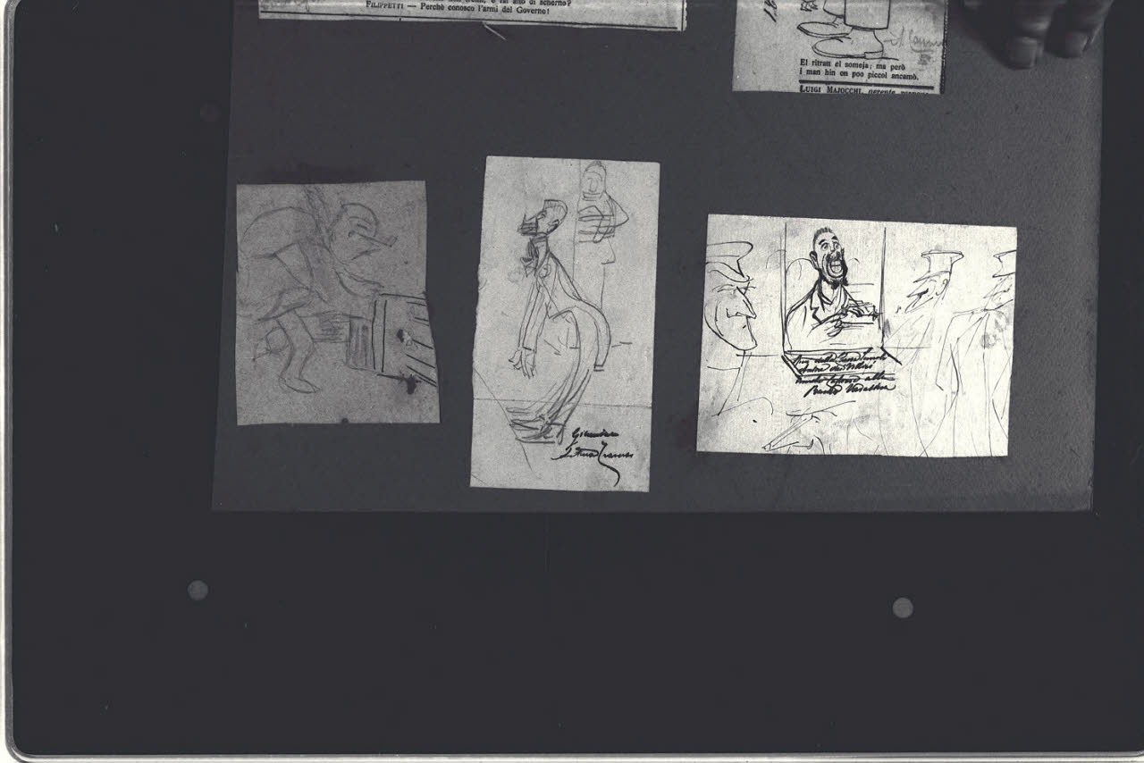 - NOTIZIE STORICO CRITICHE Disegno preparatorio per "Come si presentano..." di E. August Berta, La Lettura. Rivista mensile del Corriere della Sera, agosto 1920, p. 555.