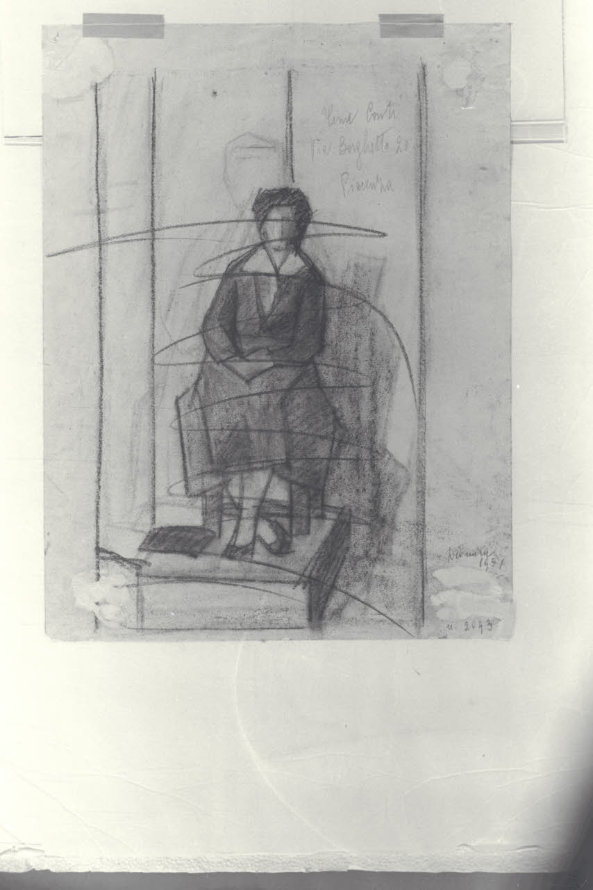 - NOTIZIE STORICO CRITICHE L'immagine si riferisce al verso del disegno presentato da Tina Conti al Premio Diomira del 1951.\n