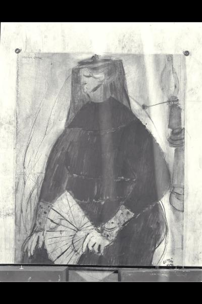 matita, carboncino, inchiostro a penna e pennello, pennarello, gouache bianca su carta acquerellata