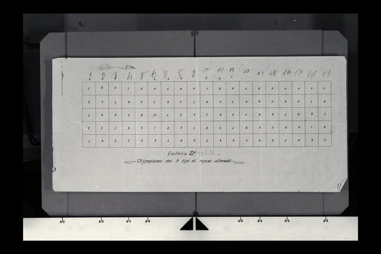 Schema guida per la disposizione dei rosoni alternati nella galleria dei polittici nella Nuova Pinacoteca Vaticana