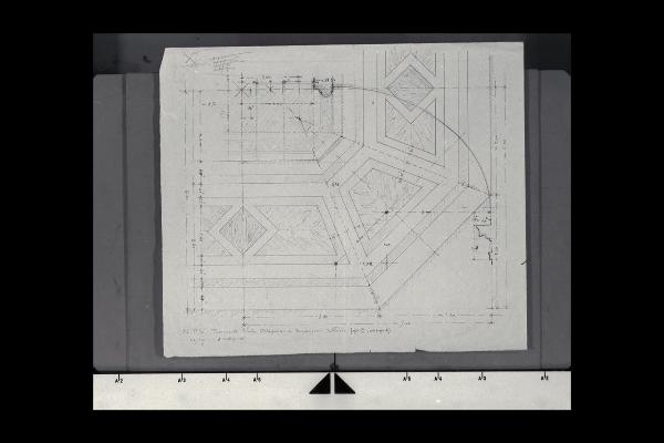 Un quarto della sala ottagonale nella Nuova Pinacoteca Vaticana con indicazione della decorazione del pavimento