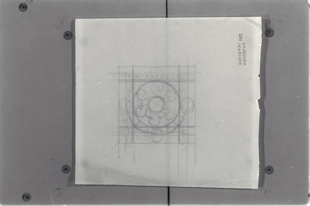 Disegno preparatorio per la decorazione di un quadro d'angolo di un velario nella Nuova Pinacoteca Vaticana