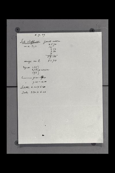 Appunti e calcoli delle superfici per la sala Raffaello nella Nuova Pinacoteca Vaticana