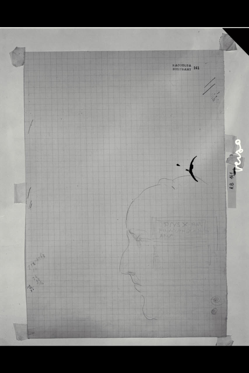 Schizzo di una testa maschile di profilo e di un'iscrizione celebrativa nella Nuova Pinacoteca Vaticana