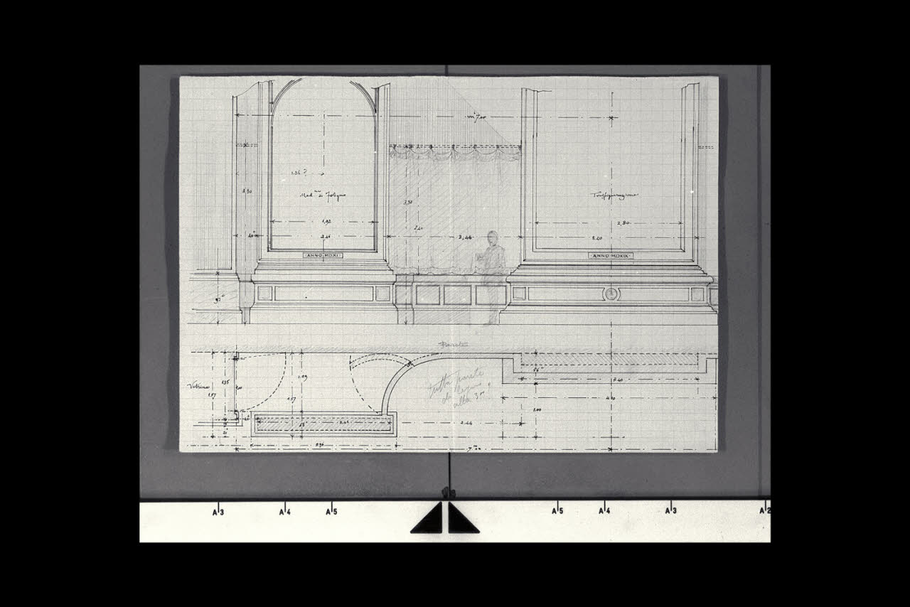 Alzato della cornice per l'esposizione dei dipinti Madonna di Foligno e Trasfigurazione nella Nuova Pinacoteca Vaticana