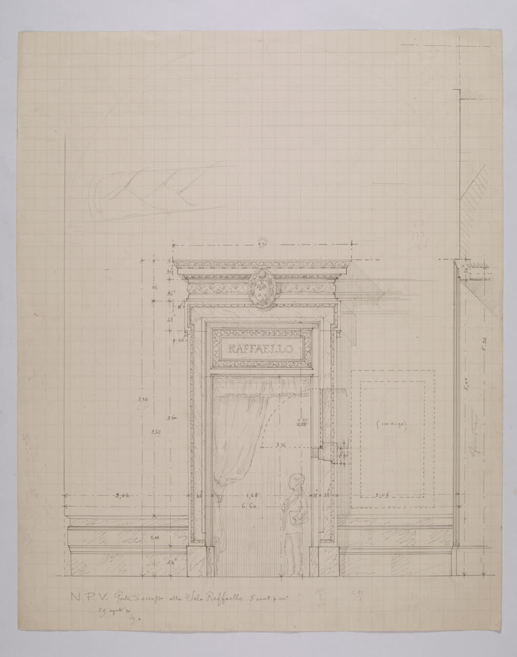 Alzato della porta d'accesso alla sala Raffaello nella Nuova Pinacoteca Vaticana
