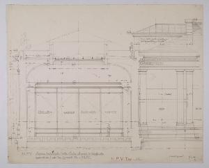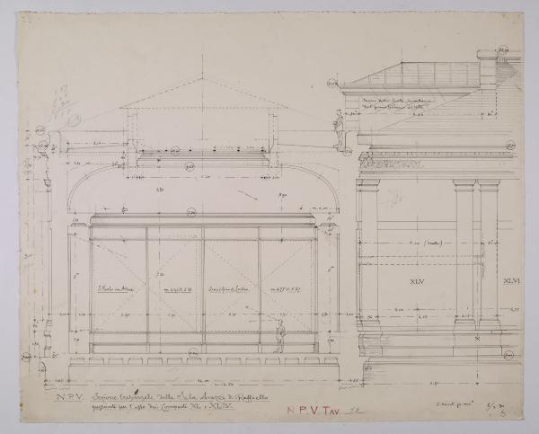 Sezione trasversale della sala degli arazzi di Raffaello passante per l'asse dei comparti XL e XLIV nella Nuova Pinacoteca Vaticana