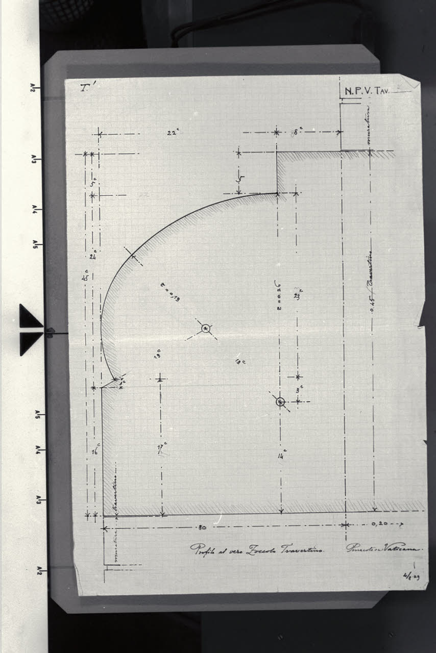 Profilo dello zoccolo in travertino nella Nuova Pinacoteca Vaticana