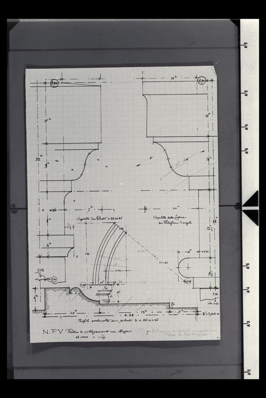 Capitelli dei pilastri, delle lesene e del profilo dell'archivolto dei pilastri nel portico di collegamento tra i Musei e la Nuova Pinacoteca Vaticana