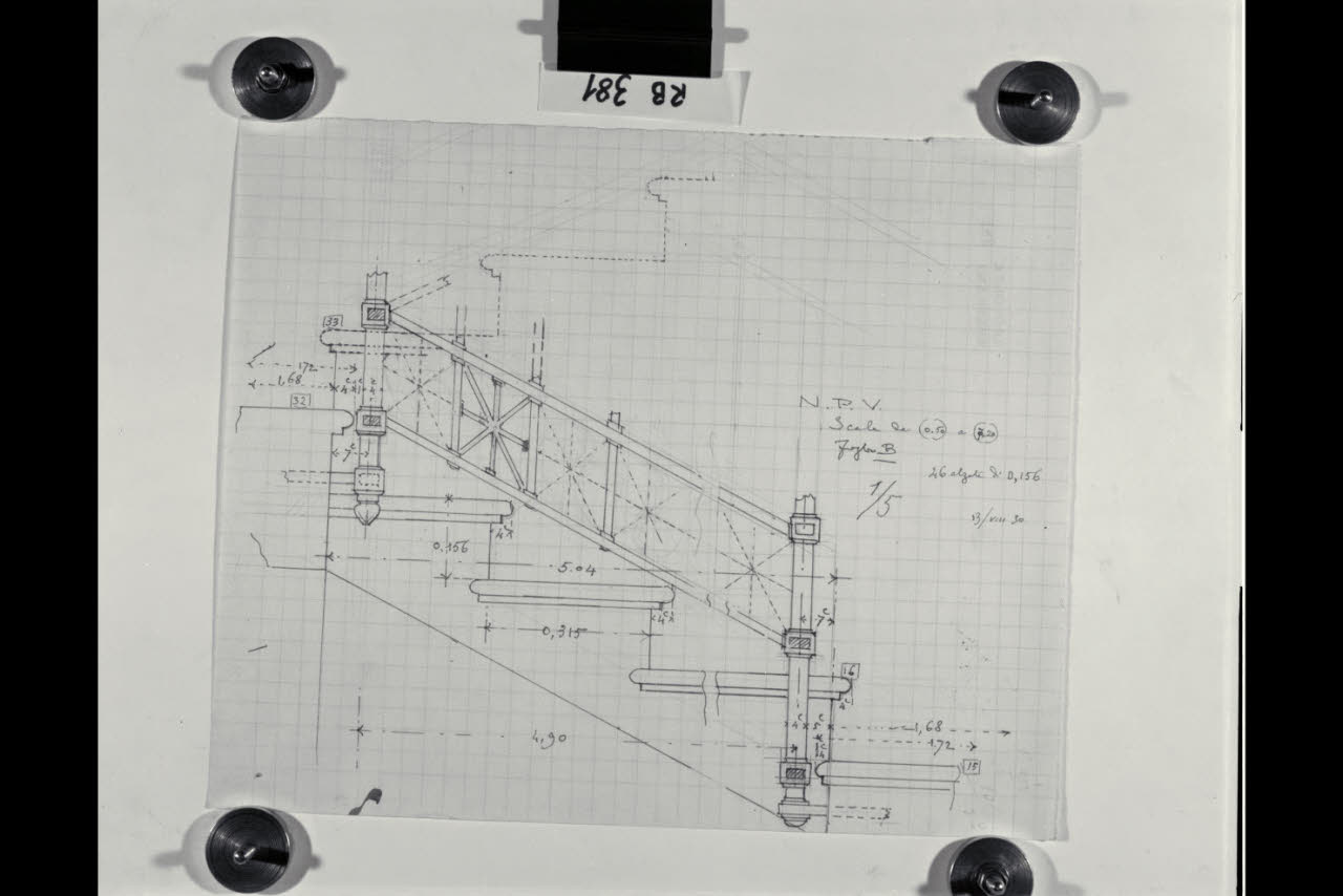 Alzato con dettaglio degli attacchi della balaustra ai gradini di una scalinata nella Nuova Pinacoteca Vaticana