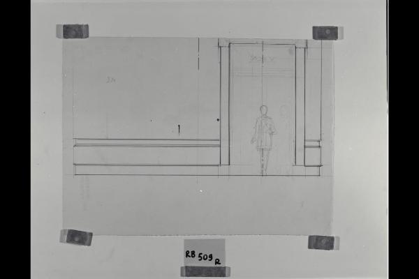 Disegno di massima in alzato dell'ingresso alla sala V nella Nuova Pinacoteca Vaticana
