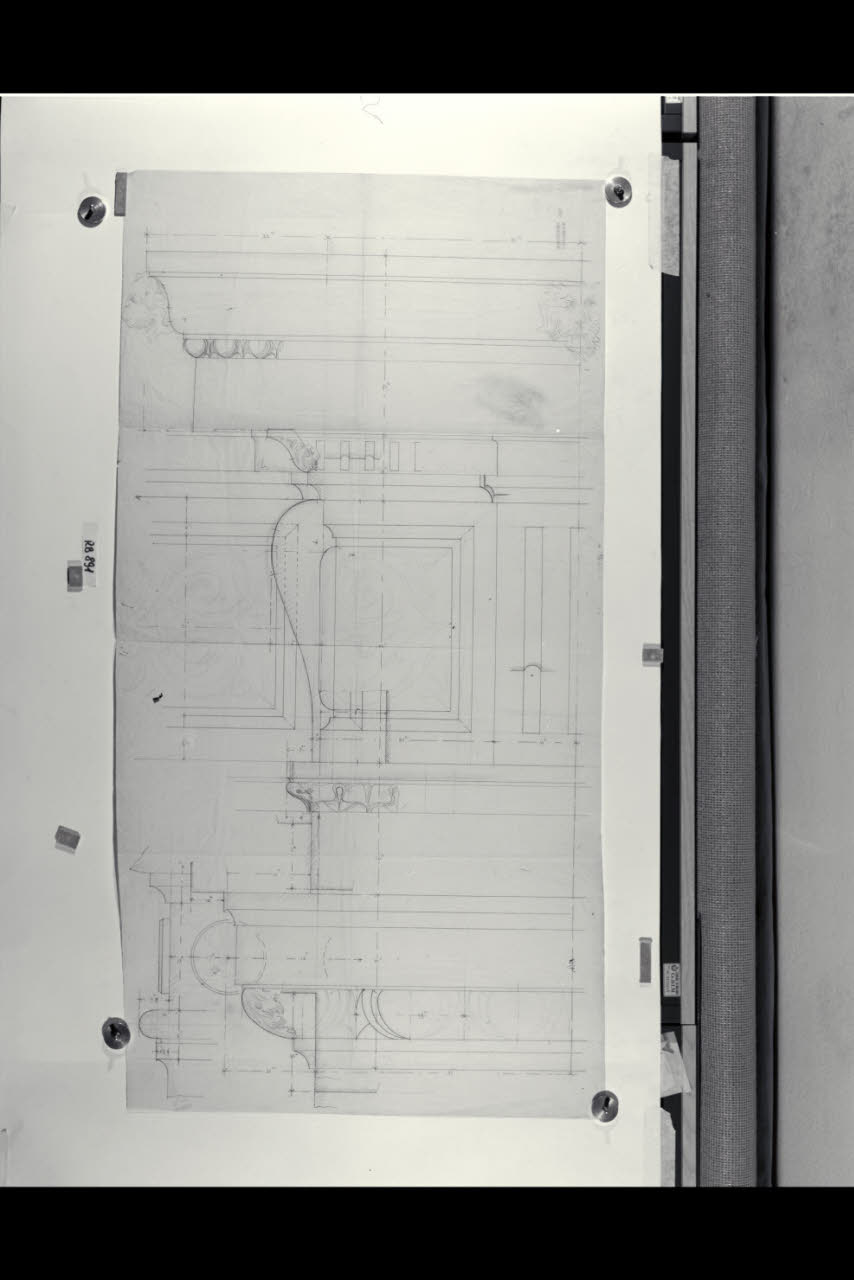 Alzato e sezione di un dettaglio della cornice nella sede di Milano della Banca Commerciale Italiana in piazza della Scala e via Manzoni. Alzato e sezione di un dettaglio della cornice nella sede di Milano della Banca Commerciale Italiana in piazza della Scala e via Manzoni