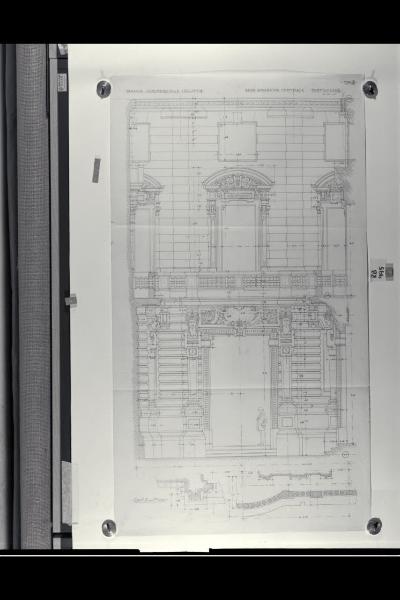 Prospetto parziale della sede centrale di Milano della Banca Commerciale Italiana in piazza della Scala. Prospetto parziale della sede centrale di Milano della Banca Commerciale Italiana in piazza della Scala