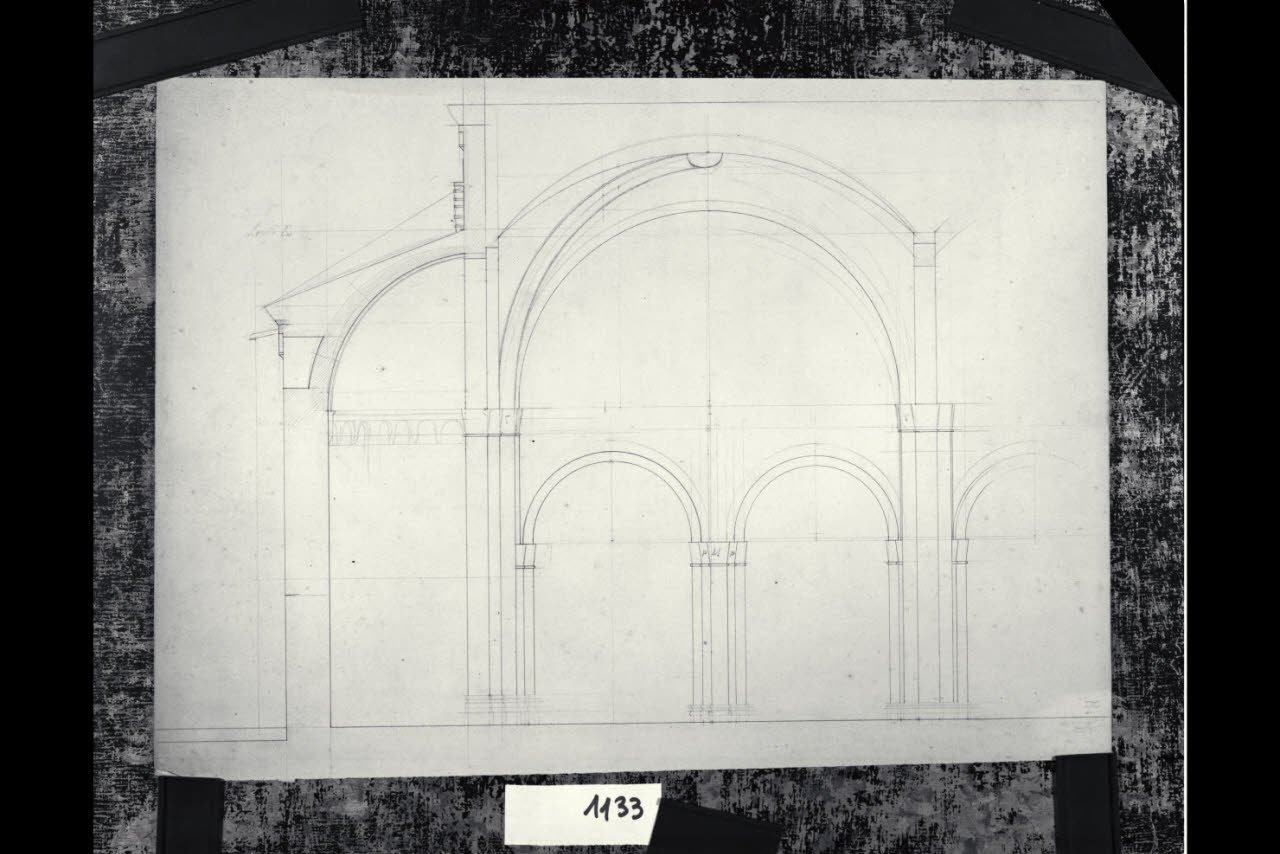 Sezione longitudinale lungo parte della navata sinistra nella Basilica di Sant'Ambrogio a Milano