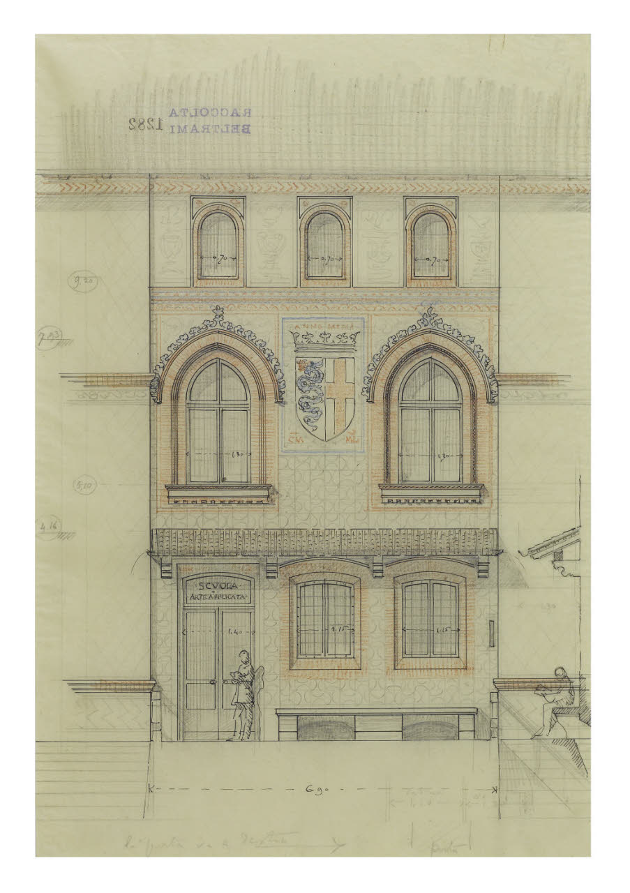Milano, Castello Sforzesco: Facciata della Scuola Superiore d’Arte Applicata all’Industria nella Corte grande