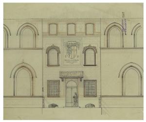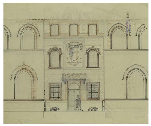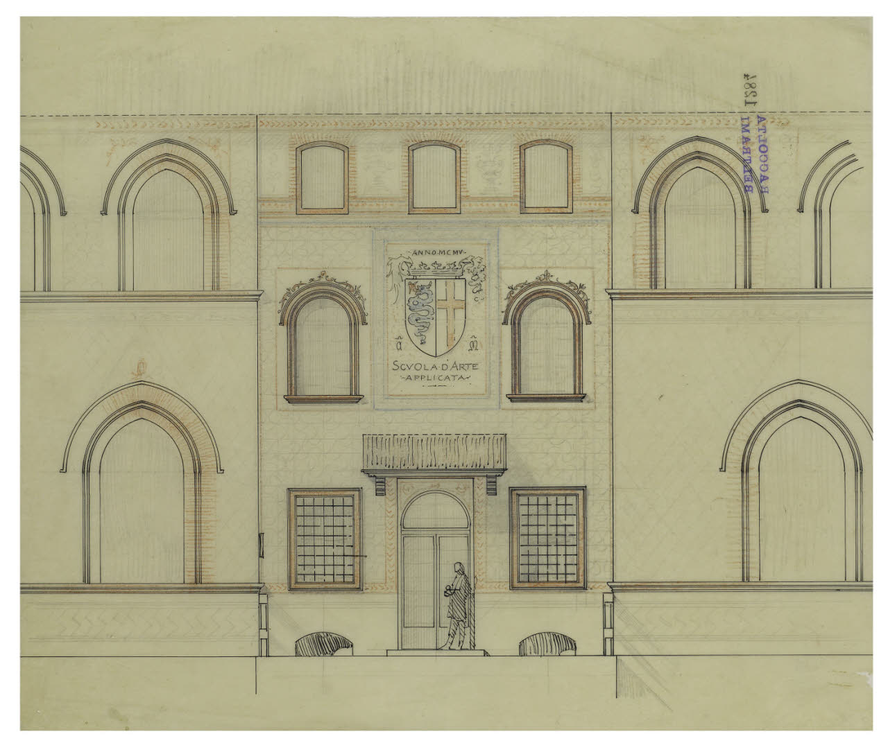 Milano. Castello Sforzesco: Prospetto della Scuola Superiore d’Arte Applicata all’Industria nella Corte grande