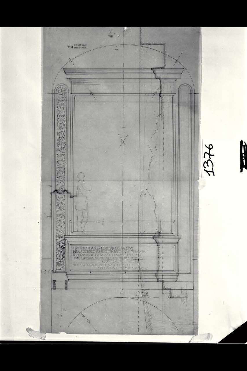 Dettagli (prospetto e sezioni) della cornice del bassorilievo di Umberto I del Castello Sforzesco di Milano. Dettagli (prospetto e sezioni) della cornice del bassorilievo di Umberto I del Castello Sforzesco di Milano