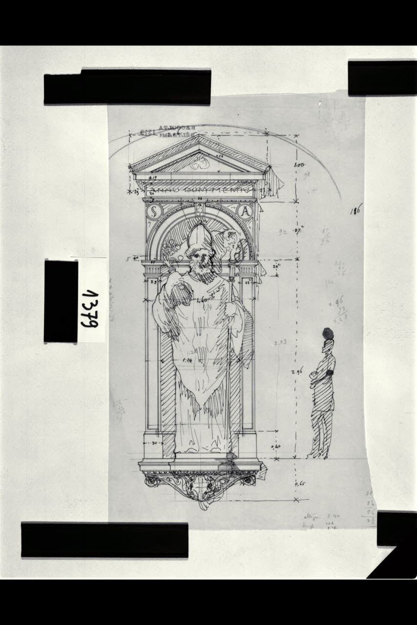 Prospetto dell’edicola con statua di S. Ambrogio (Torre Umberto I) del Castello Sforzesco di Milano. Prospetto dell’edicola con statua di S. Ambrogio (Torre Umberto I) del Castello Sforzesco di Milano