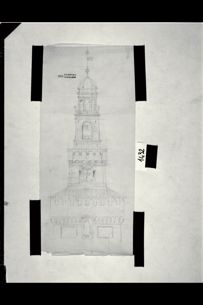 Milano, Castello Sforzesco: Prospetto della parte superiore della torre Umberto I (schizzo)