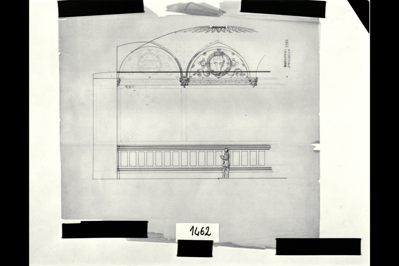 Sezione parziale della Sala delle Sculture (o del Consiglio segreto) nella Rocchetta del Castello Sforzesco di Milano. Sezione parziale della Sala delle Sculture (o del Consiglio segreto) nella Rocchetta del Castello Sforzesco di Milano